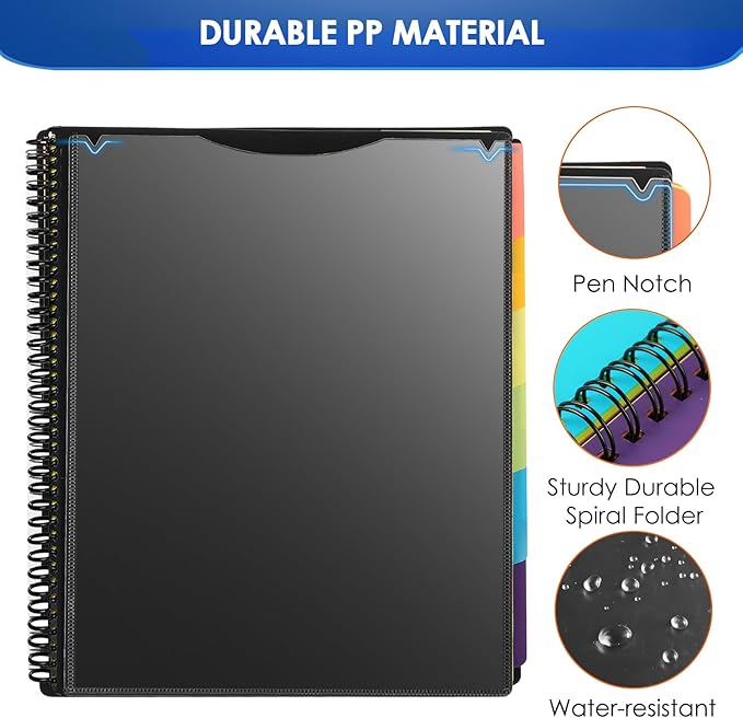 - Durable & Customizable Spiral Binder- Made from durable polypropylene, tear-proof and water- resistant, archival safe and PVC free, this colored project organizer features custom front cover with tear- proof corner for safe and multi-purpose use.