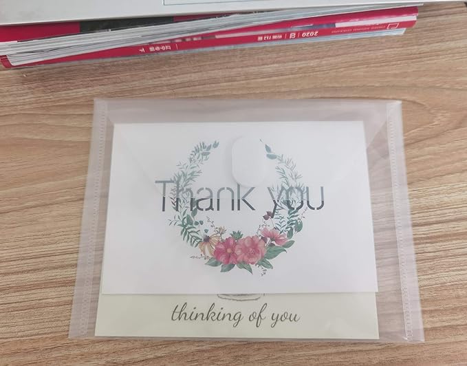 5x7 Small Plastic Envelopes Receipt Check Storage File Holder Case 36 Pack Hook & Loop Closure (clear-36 pack)