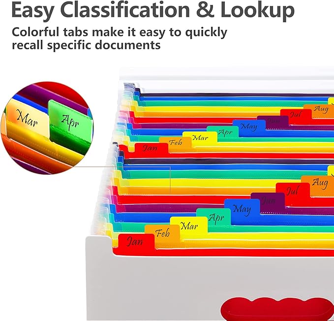- Handy organization & Easy lookup: Expandable file folder has 24 pockets designed for keeping our paperwork organized. Accurately classified storage in the specific color slot and labeled with tabs, so it is easier to find the papers what is needed.