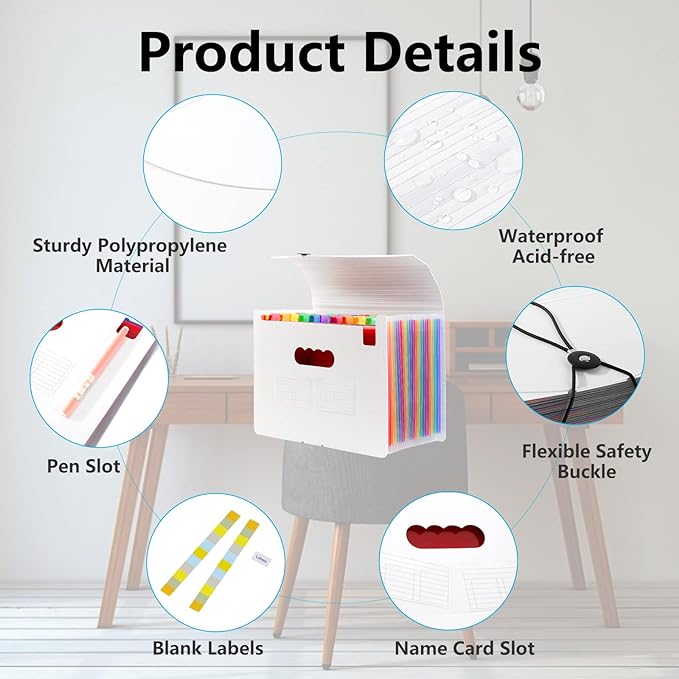 - Stable & sturdy construction: Expanding file folder is made from durable wipe-clean polypropylene. Acid-free and high-quality for using trustingly. Waterproof & sturdy enough to keep the file organizer from collapsing. The accordion folder's cord closure and adjustable flap provide additional security. Built-in file separation layers are flexible to ensure the files don't wrinkle.