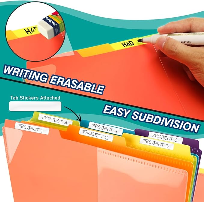 - Includes a poly project organizer folder with twelve dividers and twenty-four pockets for organizing multiple projects files neatly, also attached blank tab labels sheet