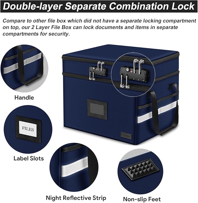 - Anti-theft Lock Protection: Coded lock of the zipper in the storage box can protect the important files in the office or home. Both 2 layers' pockets can be locked with the password lock and zippers.
