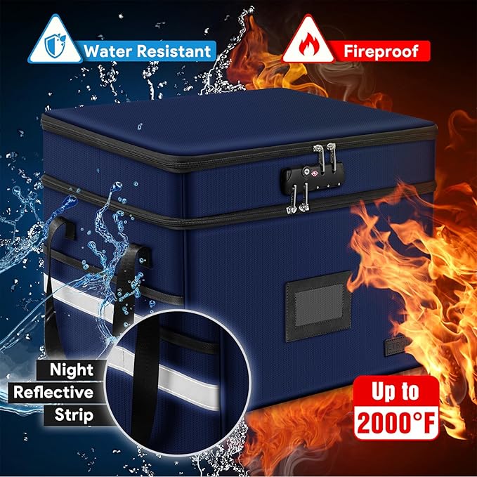 - High-Quality Fireproof Document Box: Made of double-layered non-itchy silicone-coated fiberglass. The design of a High-quality 2-way zipper provides great convenience when using.
