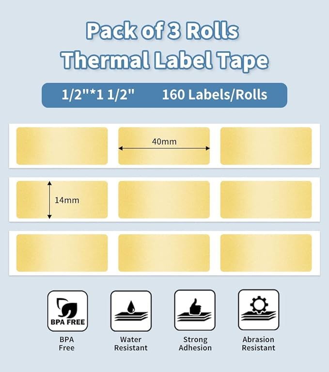 - Work with - Phomemo D30 D35 Q30 Q30S Q31 Q32 label maker. label size -14mm x 40mm (1/2"x11/2") Number of labels per roll - 160 tapes. Total 3 Rolls