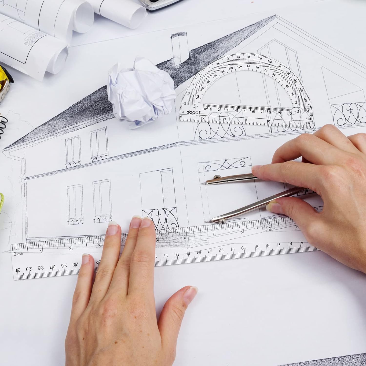 - Proper Size for You to Carry: the length of the standard ruler is about 30.7 x 3 cm/ 12x 1 inch, the length of the protractor is about 15 cm/ 6 inches, the height is about 8.5 cm/ 3.35 inches; The size is appropriate, easy to carry, and you can put it in your stationery box or bag