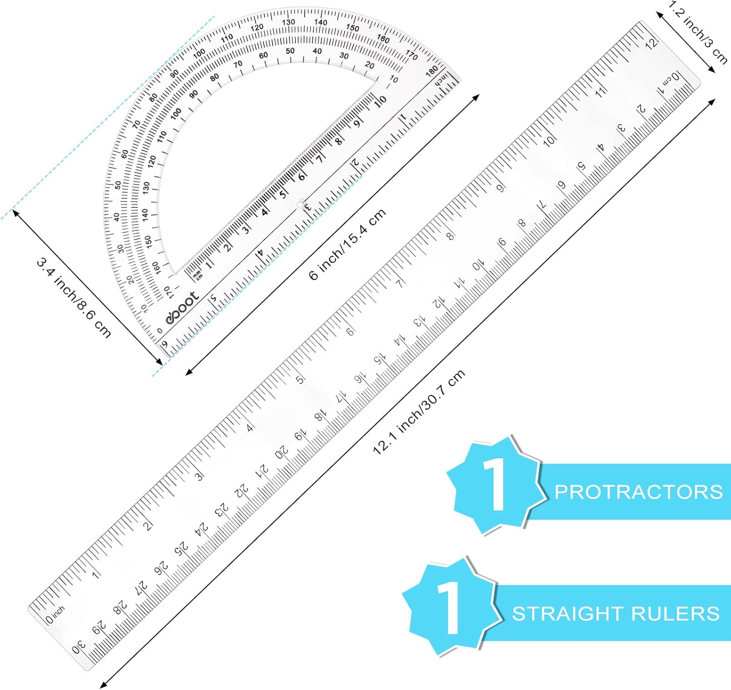 - Meet Your Requirements: you will receive 1 plastic ruler and 1 clear plastic protractor; They can be utlized to measure the length and the degree of the angle, which can meet your daily life and study requirements