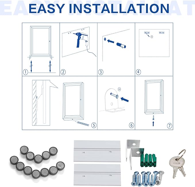 - 🔑SAFE DISPLAY —The clear and shatter-resistant windows provide plenty of visibility in high traffic or public. It's convenient to post and update notice documents under the protection of lockable doors and key mechanisms (2 keys included). Lockable acrylic doors keep information safe from theft and vandalism.