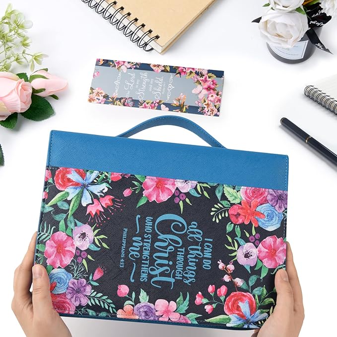 Bible Covers Case for Women Large Leather Bible Carrying Cases Holder Pink 10.8"x7.8"x2" Floral Bible Carrier Tote Bags with Bookmarks Handles Pockets Christian Bible Book Accessories Gifts