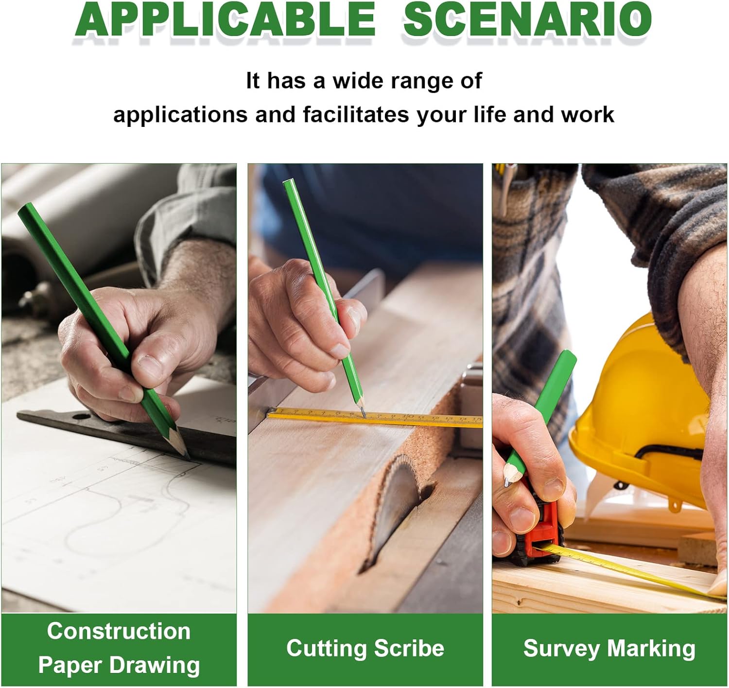 - Multipurpose: wood carpenters pencil can withstand the pressure of marking on hard, rough, and uneven surface materials, such as wood, plywood, cardboard, unprocessed wood, wood, paper, concrete, bricks, and so on