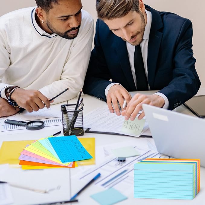 - High-Quality Material – Made from 150gsm thick paper, these sturdy lined index cards resist wear and tear. The smooth, bleed-resistant surface ensures a flawless writing experience with pens, markers, and pencils