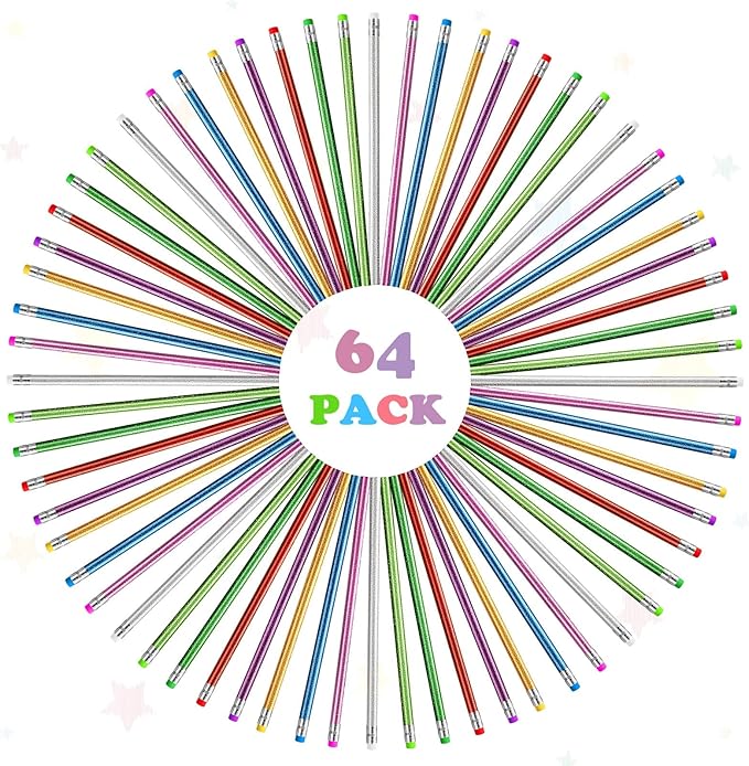 Outus 68 Pieces Glitter Pencils with Eraser Wood Colorful Pencils and Sharpeners for Graduation Kids Writing Painting