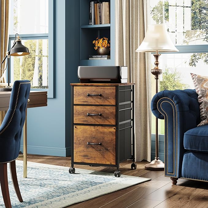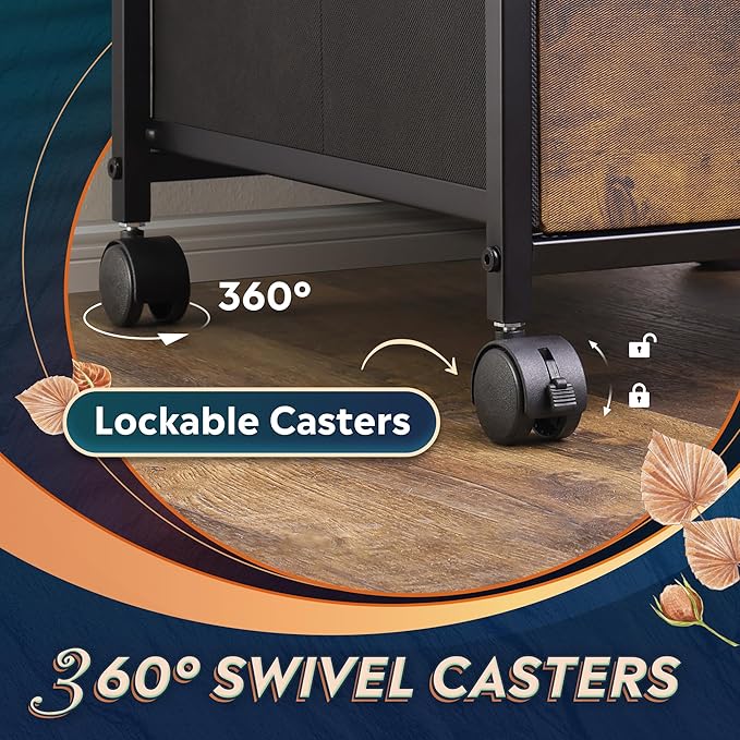 - Easy to Move: Rolling on 4 wheels, this mobile file cabinet can fix or move around your home office freely. Built-in brakes on front 2 casters to keep it in position and add stability. Unique fabric drawer design makes it only weigh 22 lbs. and light to move.