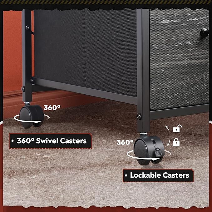 - Easy to Move: Rolling on 4 wheels, this mobile file cabinet can fix or move around your home office freely. Built-in brakes on front 2 casters to keep it in position and add stability. Unique fabric drawer design makes it only weigh 22 lbs. and light to move.