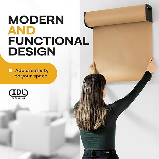 - 【MODERN AND FUNCTIONAL DESIGN】 Simple but sturdy minimalistic design of this wall kraft paper roll holder fits any decoration style. It is easy to install on the wall and load with paper rolls in seconds. The kraft paper dispenser is super practical for everyday use and adds a stylish touch to any interior