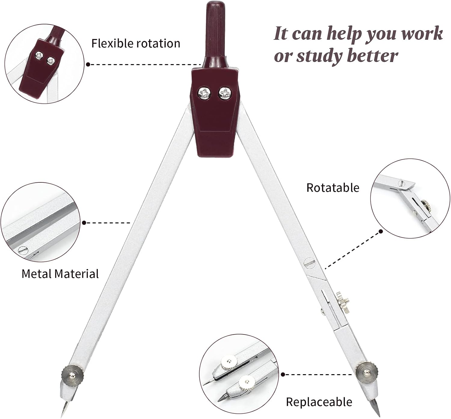 - Comfortable Durability: The professional compasses are made by aluminum and stainless steel. Long-Lasting and easy carry.
