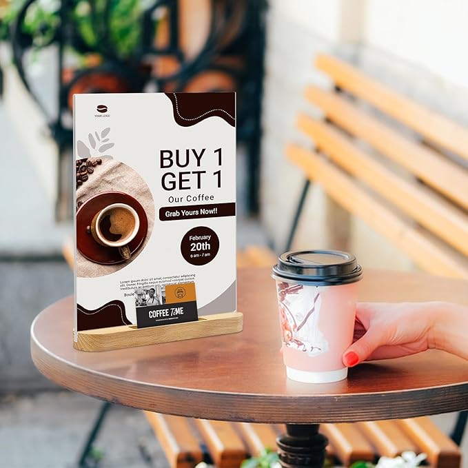 - Wooden acylic Sign Holder Dimensions: 8 1/2”W x 11”H Vertical.Business Card Holder:3 11/16”W x 1/2”H x 1/2”D(holds 25 standard business cards),The heavy duty wooden base is heavier and suitable for indoor and outdoor use.