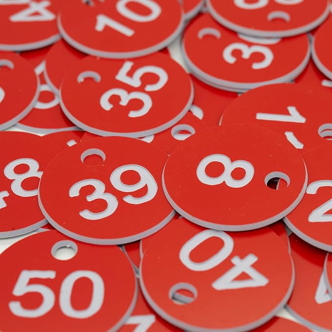 StayMax Plastic ID Number Tags Engraved Tags Key Tags Without Key Rings (201-300, Red)