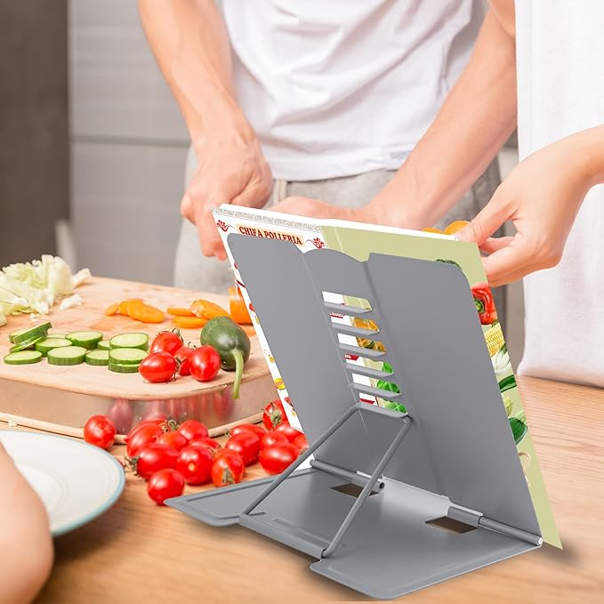 - 【Adjustable Book Holder】 Book Holder have six reading positions,The multiple notches on the backrest can adjust its height and angle.Adjust the height between the eyes and reading books or documents well