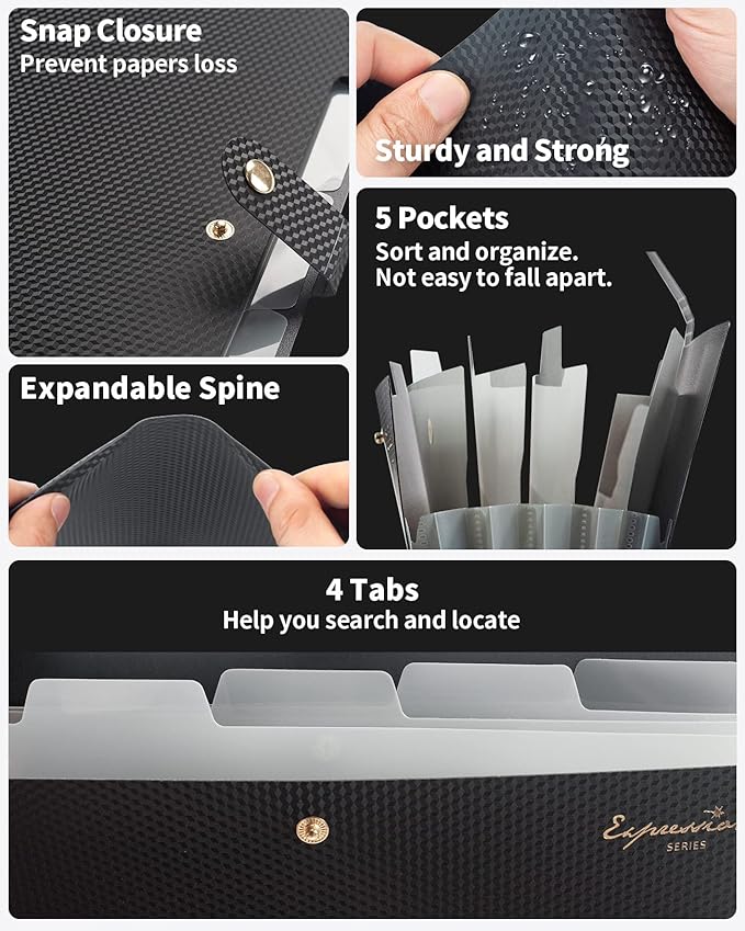- Easy Organization: This expanding file folder makes sorting and organizing your papers a breeze. Featuring 5 pockets with tabs and colorful labels for quick sorting and retrieval.