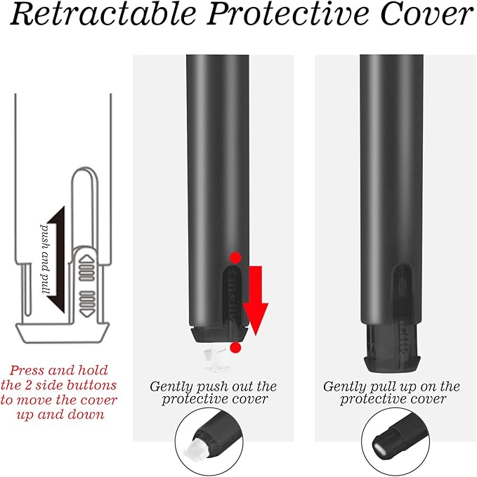 - 【Pull-out Protective Cover】Adopt one-piece telescopic belt nozzle design, the correction tape can be pushed out with a light push, and the tape nozzle can be retracted with a light pull, effectively protecting the head of the correction tape (Please hold down 2 side buttons when pushing)