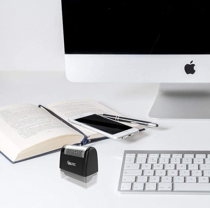 Veltec ID Protector Ink Roller - Identity Theft Protection Roller Stamp Set (Black, Stamp+6 Refills)