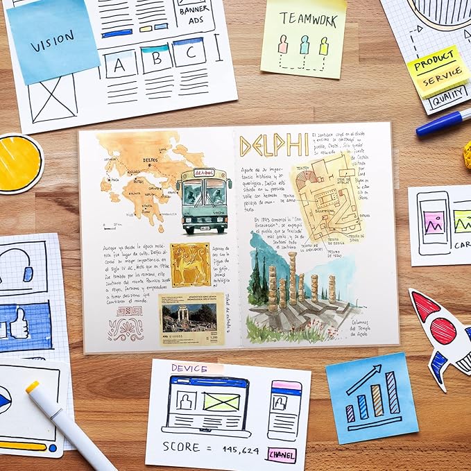 - 【Study Paper】The simple solid color cover is made of sturdy Kraft paper. You can spread out inner paper 180 degree to write at will. The paper is smooth and easy to write without ink penetration. Cream-colored paper protects your eyesight, reduces visual fatigue.
