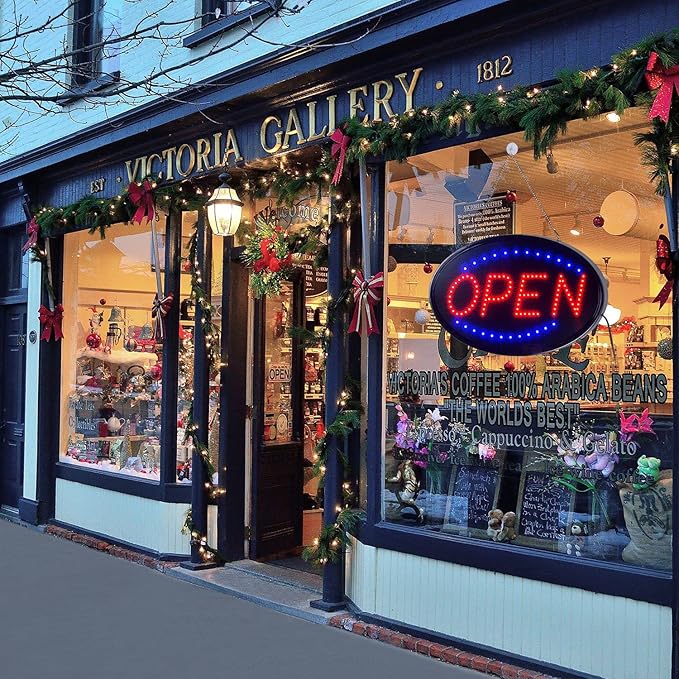 - EYE CATCHING: The unique LED open sign is super bright and eye-catching, and its large size of 18.9*9.8 inches can easily attract the attention of more nearby and far away passersby. Increased store traffic and exposure, bringing more potential customers to your business.