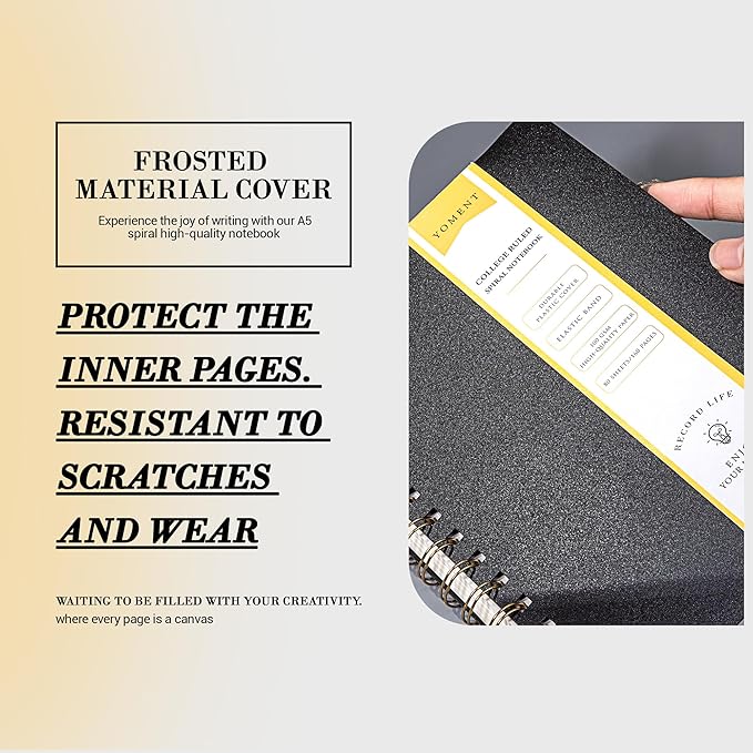 - Plastic Hardcover Spiral Notebook--The cover of spiral journal is made of durable plastic material and minimalistic colors.The sturdy and water-resistant cover protects interior pages while journaling or traveling.At the same time,this spiral bound journal is stain-resistant,you can easily wipe off the stains on the cover.