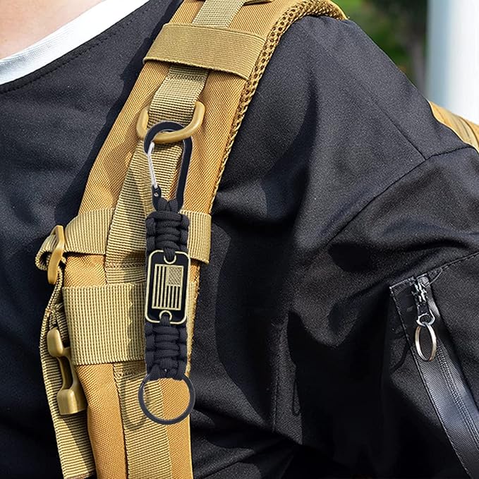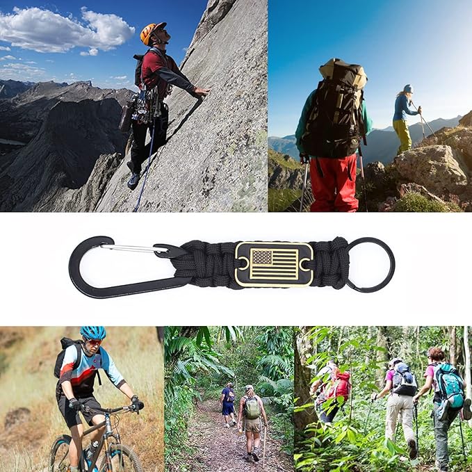 Paracord Keychain with USA Flag, Paracord Carabiner Keychain Clip, Braided Lanyard Utility Ring Hook Outdoor Camping Kit