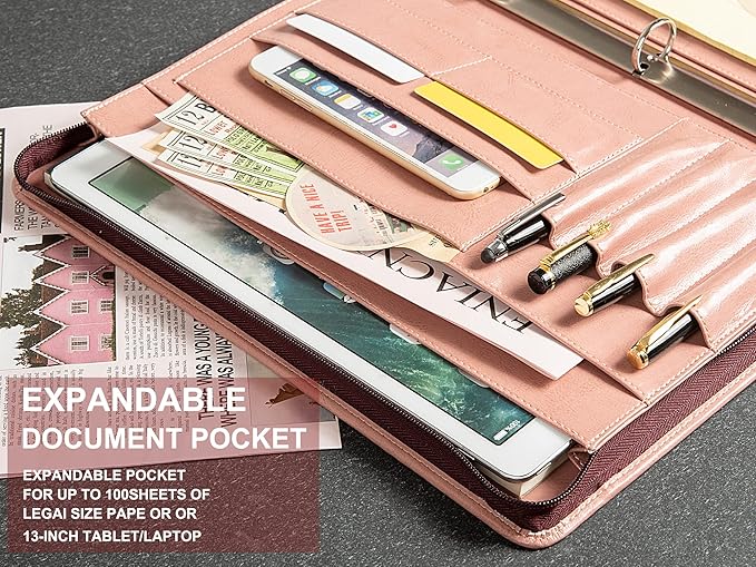 Free Engraved Name, Customized Pink Binder Portfolio, 3 Ring Binder Padfolio, Business Organizer Folio with Zipper, A4 Letter Sized Clipboard Portfolio, Gift for for Women/Girls, Pink