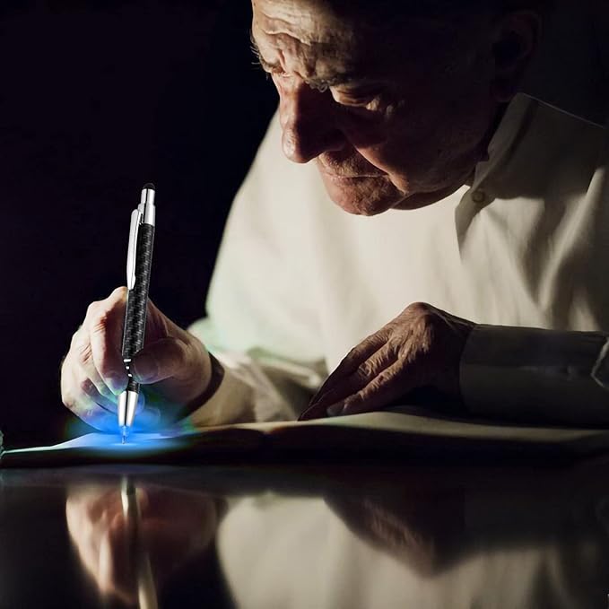 - UNIVERSAL AND GIFT IDEAS: Perfect for anyone who needs lighting in dark environment - bedtime diary, night shift doctor and nurse, students, restaurants, inspired writer at night, cinema staff, pilot, military etc. Also a stylus top click which compatible with your touch screens. Nice Gift Ideas for everyone for writing.