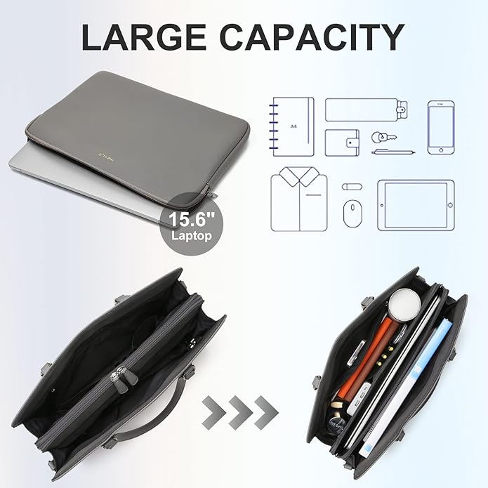 • 【ROOMY CAPACITY LAPTOP TOTE BAG】The laptop bag for women has an independent laptop compartment fits under 15.6 inch laptop and a 15.6 inch laptop sleeve carry computer case.Two main pocket designed for A4 documents, books, gadgets and more.One zipper pocket design for personal stuff such as cell phone, credit card passport and so on.