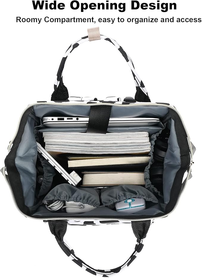 Cow Print Laptop Backpack College School Backpack Bookbags Nurse Backpacks Travel Bags Casual Daypacks for Women Girls Fits 15.6 Inch Notebook