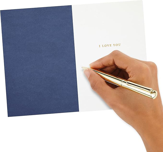 - Cover features sophisticated gold foil "Forever & always" lettering on a blue background. Inside reads: "I love you."