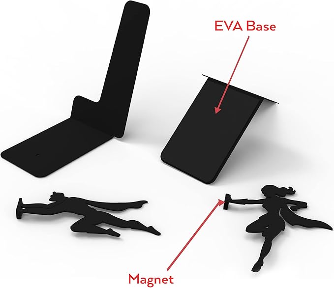 Artori Design Book Ends to Hold Books Heavy Duty Hidden Metal Bookends for Shelves Bookend Book Holder for Home Decorative Gift for Book End Lovers and Home Décor (Supergal+Book&Hero)