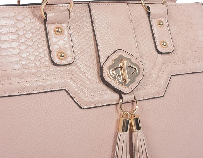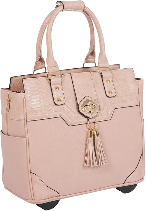 - Stylish pink pebble texture faux leather with pink python faux leather accent trim rolling laptop bag, rolling briefcase or wheeled tote bag.