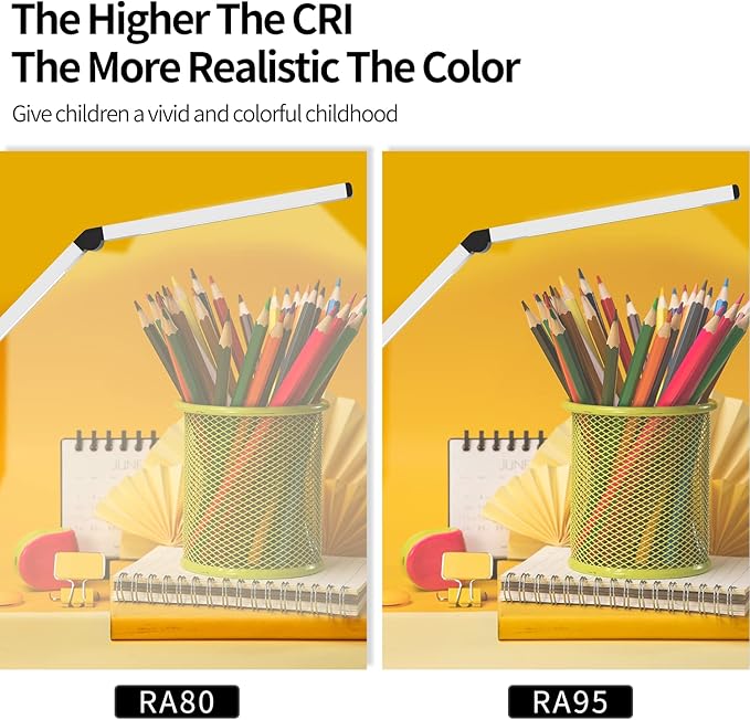 - 【Dual Light Source Design & Wider Lighting Range】Micomlan swing arms LED desk lamp with dual light source,which illuminating the entire desk workbench evenly without dark areas or overlapping shadows.desk lamp with high quanlity. LED(RA=95) offer a natural & soft lightlike the sunlight, flicker-free and glare-free illumination makes your eyes without fatigued even staying in the light for a long time.