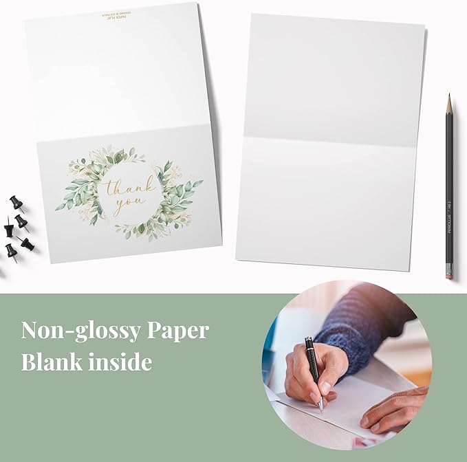 20 Eucalyptus Matt Gold Foil Greenery Thank You Cards with Envelopes & Stickers 4x6 Inch, Bulk Thank You Notes, Suitable for Business, Baby Shower, Wedding, Graduation, Bridal Shower, Funeral