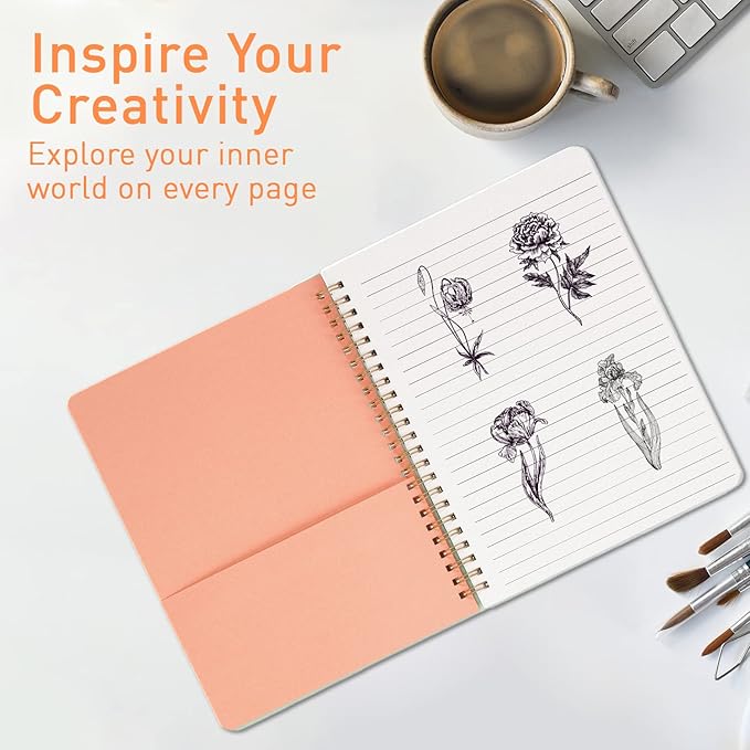 Sweetzer & Orange S&O Cute Spiral Notebooks - College Ruled Spiral Notebook with Pockets - Hardcover Notebook for Women - Cute Notebooks for School & Journal - 80 Double-Sided Pages, 6.25" x 8.25”