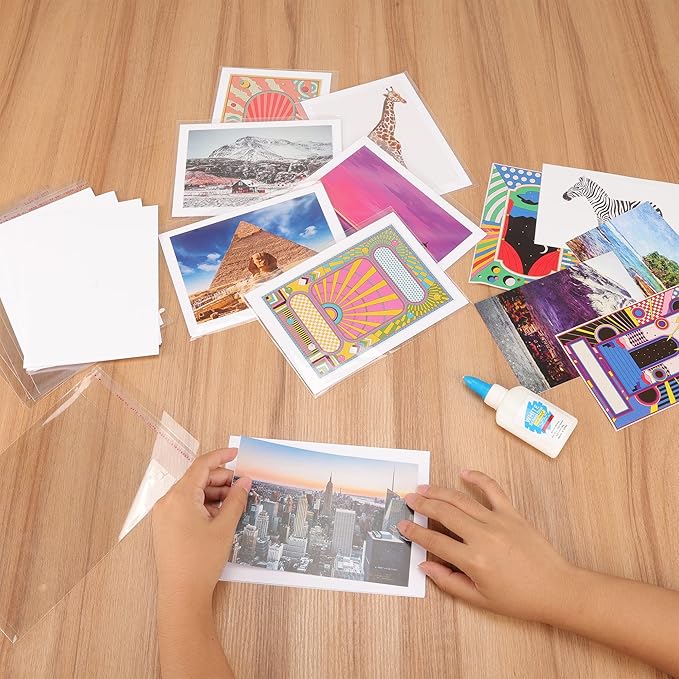 - Self-adhesive Cello Bags: Easy peel & stick application for your merchandise; protect your items from dust, bugs, moisture, and mildew; these clear 5 x 7 plastic sleeves will work perfectly for holding the handmade greeting cards, A7 envelopes and photos