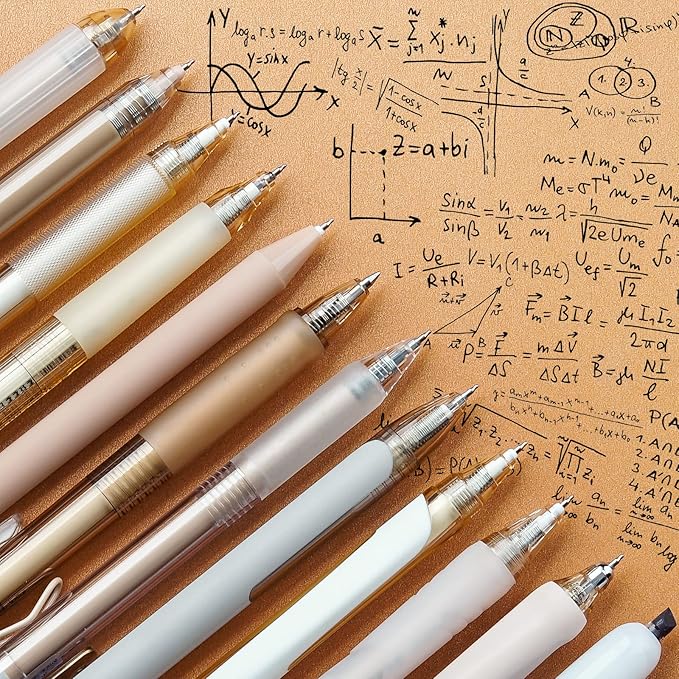Four Candies 12Pack Pastel Gel Ink Pen Set, 11 Pack Black Ink Pens with 1Pack Highlighter for Writing, Retractable 0.5mm Fine Point Note Taking Pens for School Office (Brown)