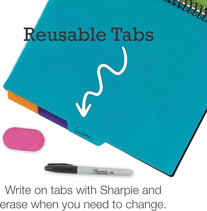 - Write-on and Erase Color Tabs - Locate and categorize more efficiently by writing on your reusable colored tabs with a marker and erasing when done, making it easy to clean for multiple uses