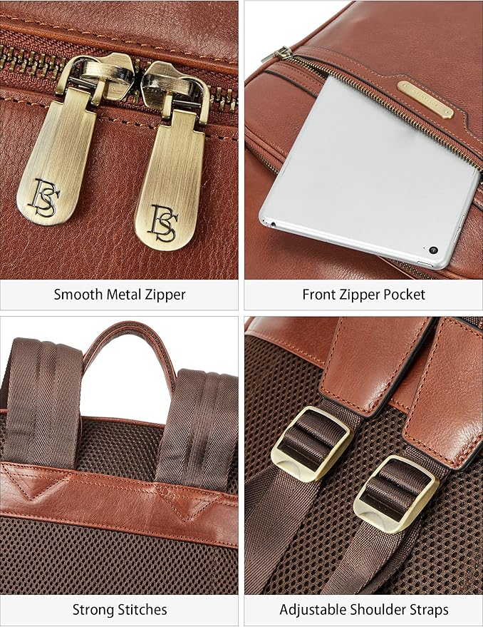 - ❖ VEGETABLE TANNED FULL GRAIN LEATHER: This leather laptop backpack is handcrafted from luxurious materials. Made of high-quality full-grain vegetable-tanned leather imported from Italy. The high-end design makes this backpack look vintage and fashionable, it is also a symbol of status and luxury. Top U zippers for your convenience, adjustable shoulder straps are comfortable and wouldn't dig into your shoulder.