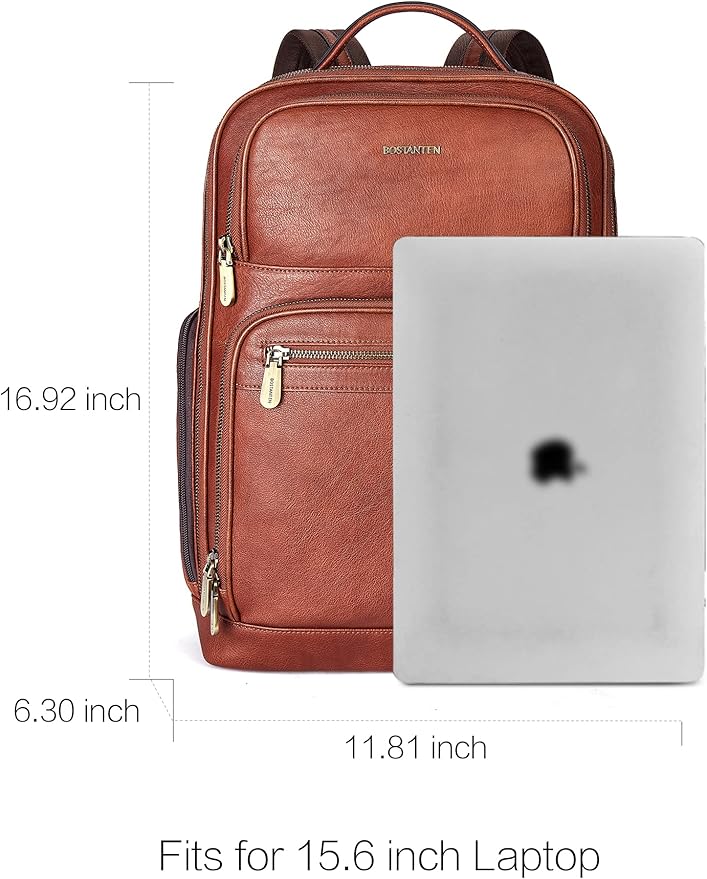 - ❖VINTAGE DESIGN: Stylish and clean style with bronze color hardware and BOSTANTEN logo, crafted from the high quality materials, luxurious detailing and immaculate finish, it is never out of classy. Sturdy stitching allows the backpack purse to withstand heavy loads. U-shaped zipper closure can expand the rooms of mens laptop backpack. Adjustable shoulder straps can meet your needs of lengths. Carry handle for easy carrying in hand. This leather backpack meets any of your needs.