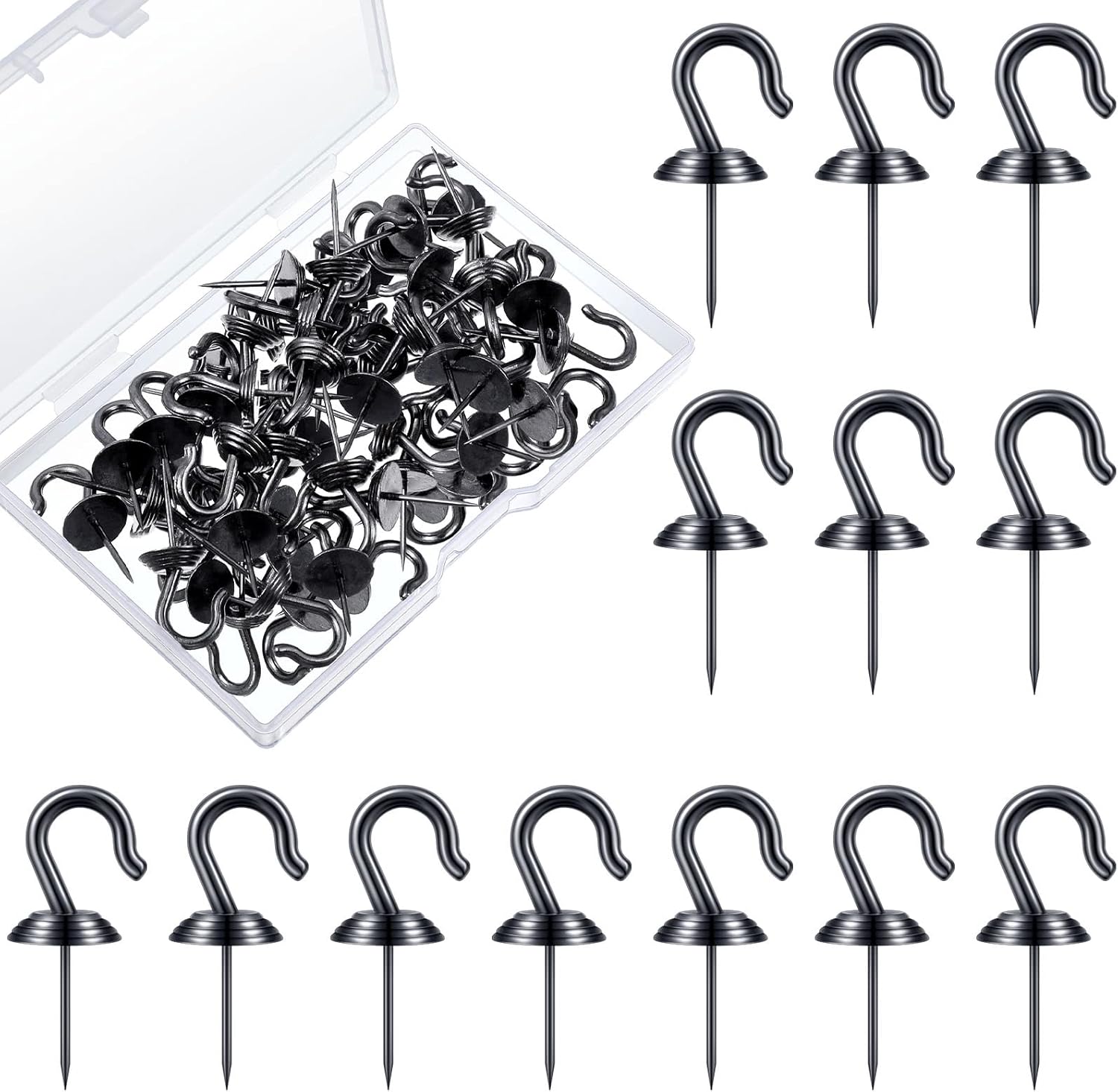 Hotop 30 Pieces Push Pin Wall Hooks Metal Thumb Tack Hangers Iron Alloy Nail Decorative Picture Hooks for 20 Lbs Home Office School Party Supply (Black)