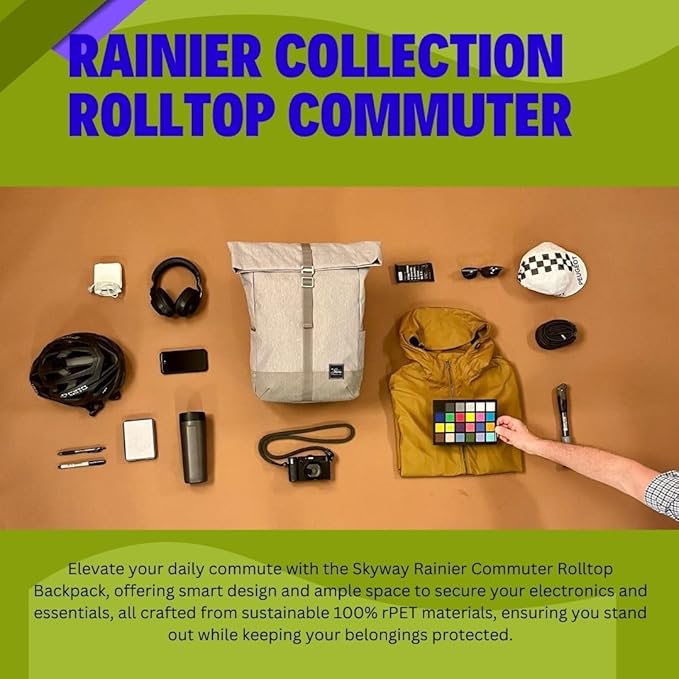 Skyway Luggage Rainier Rolltop Commuter Casual Daypack for Work or Hiking, Eco-Friendly, Made of 100% rPET Travel Laptop Bag for Women & Men, 20L, Moab Red