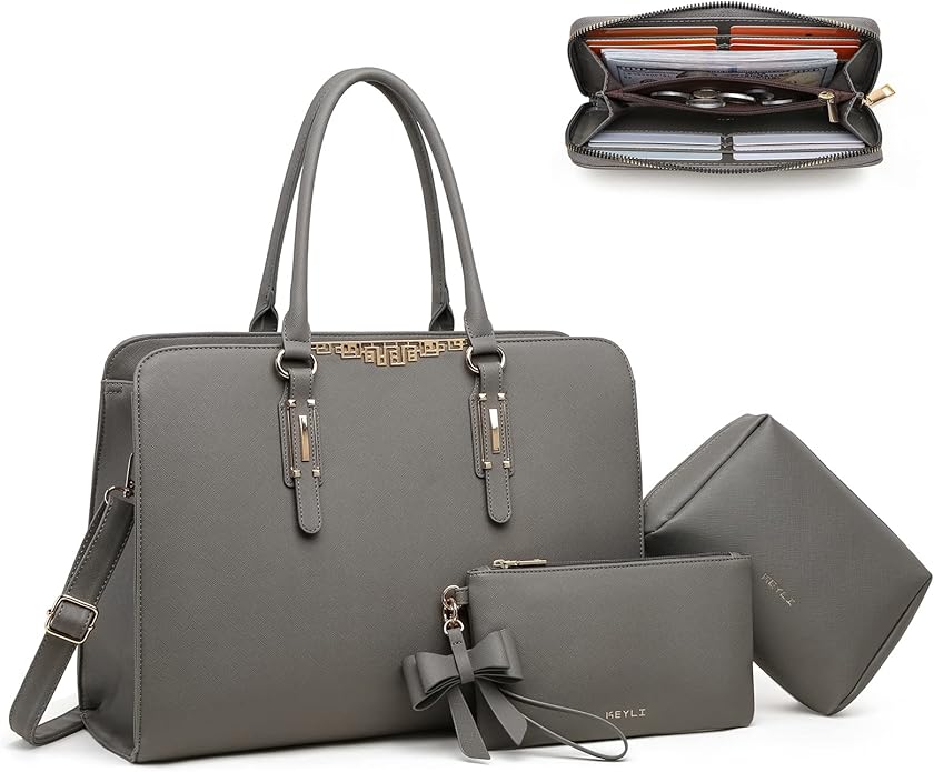 Keyli 4pc Sets Laptop Bag for Women Large Leather Laptop Briefcase with USB Charging Port Computer Shoulder tote Bags Purse