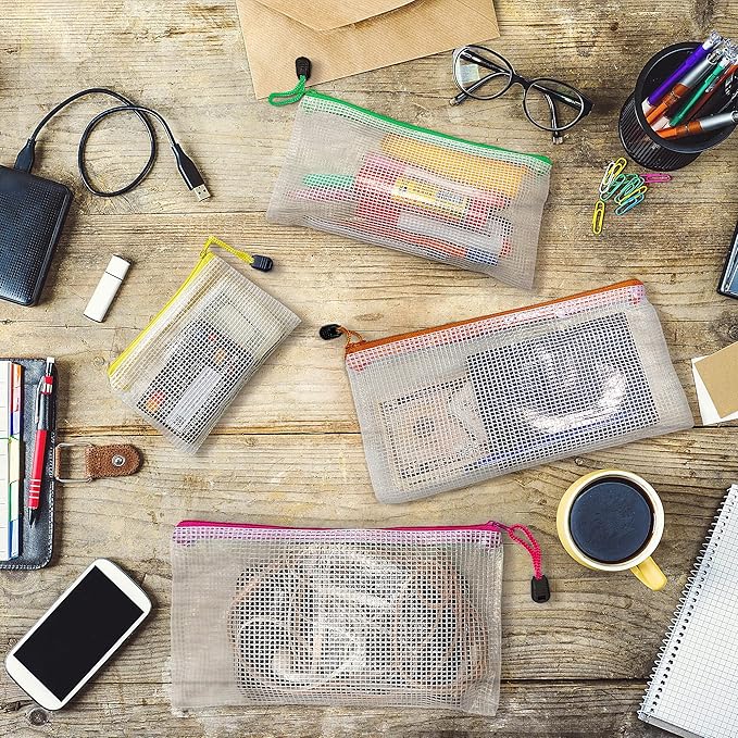 - ☑️ Package includes: 16 mesh zipper bags. A4x4, A5x4, A6x2, Billx2, B6x2, B8x2, Different colors for better sorting your items.