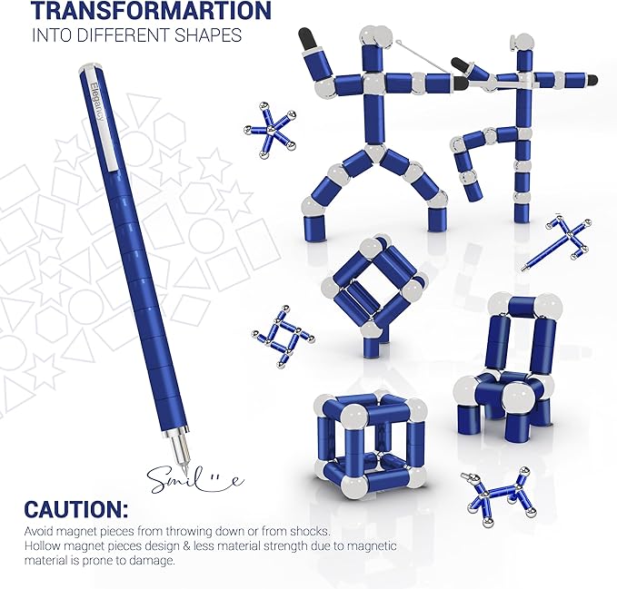 - 🖋️ DEFORMABLE WRITING PEN - This is not just a pen, also be finger fidget toys. This Magnet Pen can be rotated and transformed into a variety of creative, free combination, multiple and diverse plays. This magnetic pen can change shape conforming to your images anytime, anywhere, like swords, robots, monsters, etc. It is a good magnet toy to pass the time.