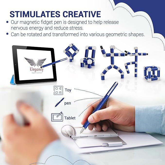 Elegancy Fidget Pen Magnetic Balls | Deformable Decompression Magnetic Pen Fidget Toy for Teenagers Gifts for Men | Cool Stuff Magnets for Kids (Blue)